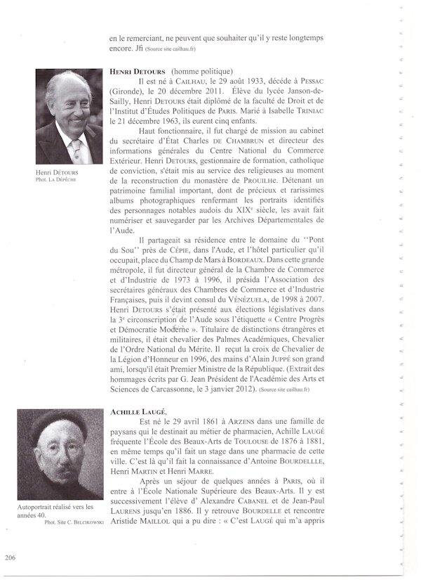 A cette longue carrière d'artisan s'ajoute des fonctions. Cet homme brillant, ami d'Achille Laugé, après plusieurs années de conseil municipal, fut Maire de Cailhau de 1945 à 1959.